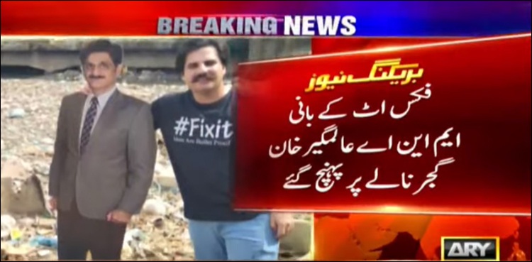 KARACHI: Member National Assembly and founder of a social welfare organization by the name of ‘FixIt’, Alamgir Khan resorted to a unique act of protest on Sunday to highlight the dismal state of cleanliness in the biggest city of Pakistan, ARY News reported.