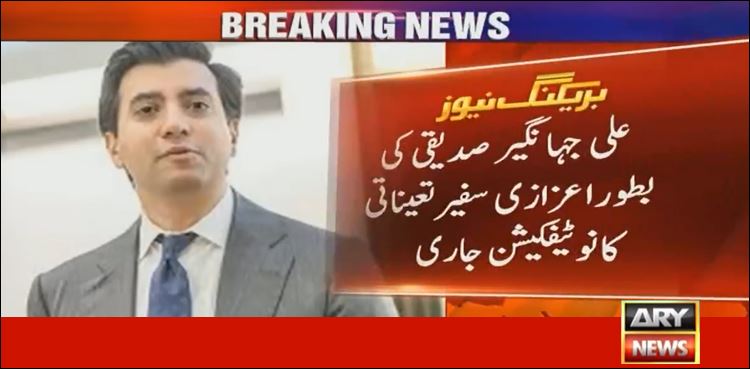 ISLAMABAD: Prime Minister Imran Khan appointed Pakistan’s former Ambassador to the United States, Ali Jahangir Siddique as an honorary ambassador for investment, ARY News reported on Friday.