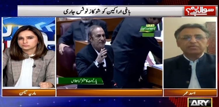 Asad Umar, while talking to ARY News programme Sawal Yeh Hai today, revealed that the ruling PTI had issued show-cause notices to three MNAs who are residing in the Sindh House. He said that two MNAs have contacted the party leadership and agreed to remain with the government.