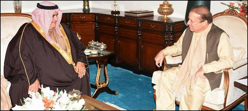 ISLAMABAD: Foreign Minister of Bahrain Shaikh Khalid Bin Ahmad Al Khalifa called on Prime Minister Nawaz Sharif in Islamabad on Monday, ARY News reported.