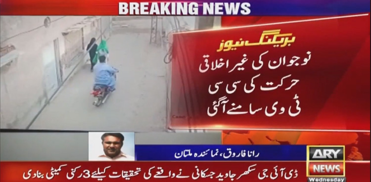 As per details, the CCTV footage shows two women sexually harassed on the street by an unidentified man who was riding a motorcycle in Multan.
