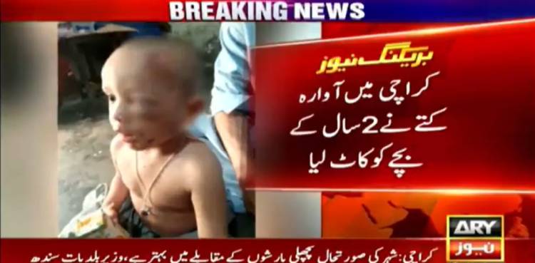 KARACHI: In yet another incident of dog-bite, a two-year child sustained severe wounds on his face after a stray dog mauled him in Gulzar Colony area of the city, ARY NEWS reported on Saturday.