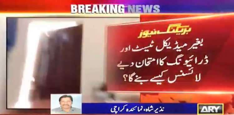 KARACHI: An official at Karachi’s Korangi driving licence (DL) branch was caught on camera extorting bribe for issuance of a driving licence without a hassle having to undergo medical and driving tests.
