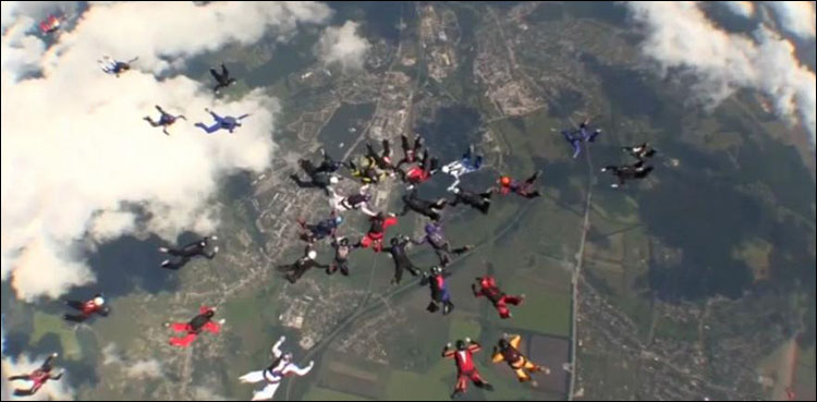 During 90 seconds of free fall, the skydivers changed formation three times.