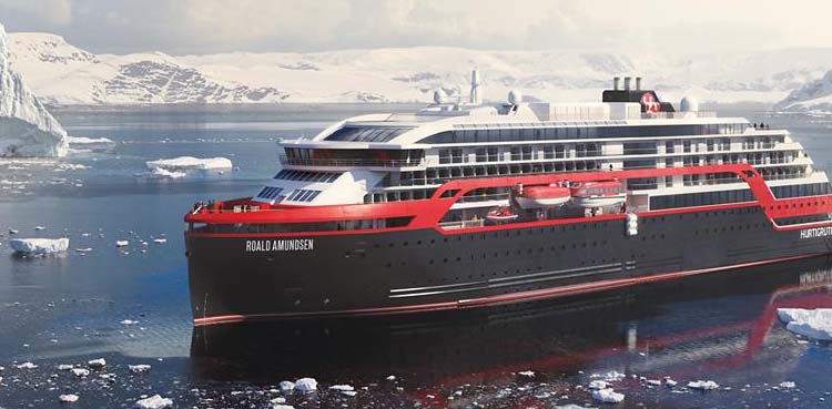 The hybrid expedition cruise ship, the Roald Amundsen, can take 500 passengers and is designed to sail in harsh climate waters.