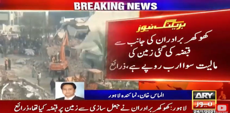 LAHORE: District Administration Lahore on Sunday retrieved 38 kanals of state land allegedly illegally occupied by PML-N’s Khokhar brothers, reported ARY News.