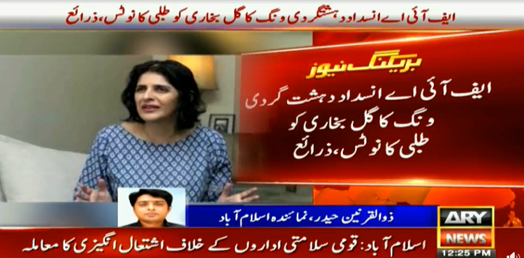 ISLAMABAD: The Federal Investigation Agency’s (FIA) Anti-Terrorism Wing on Tuesday summoned social media activist Gul Bukhari over her defamatory remarks against the state institutions, ARY News reported, citing sources.