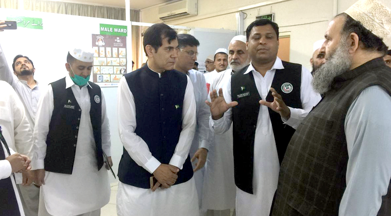 Director Medina Tariq Rehmani and Head Medical Mission Medina Dr Arif Zaidi briefed the minister about various services being extended to pilgrims at the facility.