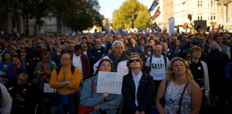 LONDON: Hundreds of thousands of supporters of the European Union marched through London on Saturday in the biggest demonstration so far to demand that the British government holds a public vote on the terms of Brexit.