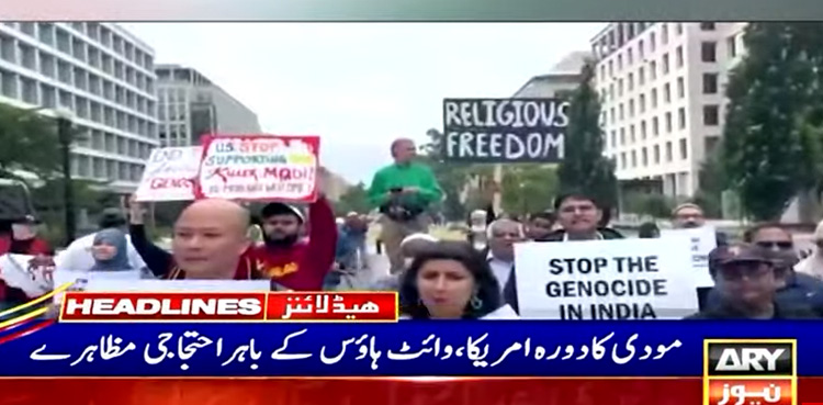 During Modi’s visit to the United States, several Indian communities in U.S held a protest outside the White House, including Indian-origin Sikhs, Muslims, and Christian communities residing in America, ARY News reported on Friday.