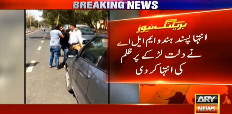 In a video, which is available with the ARY News, Upadhyay and his supports were brutally torturing the low-caste man with iron roads, batons and kicks. They also smashed his car. The video went viral as soon as it was uploaded on the social media.
