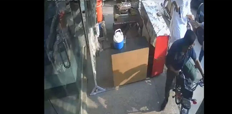 The second incident was reported in Karachi’s Paposh Nagar area where a father-son duo was looted by the armed men. The footage showed the muggers walking fearlessly and stopping the motorcycle of the father-son duo.