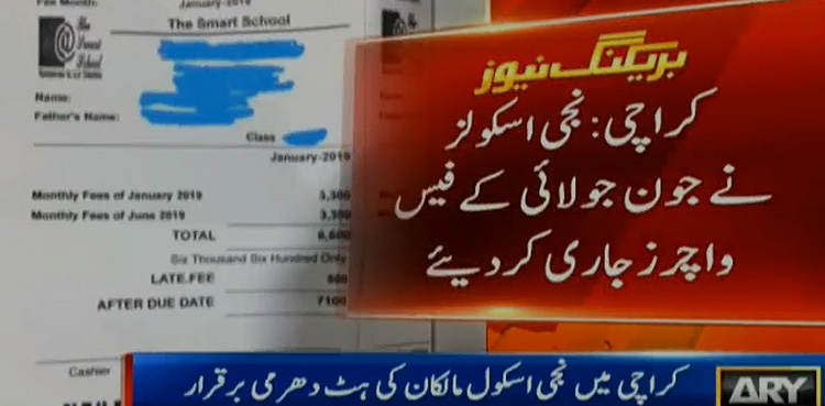 ISLAMABAD/KARACHI: Despite Supreme Court (SC) orders, some schools in Karachi issued fee vouchers for June and July to students on Monday, reported ARY News.