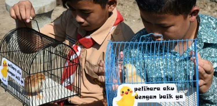 Around 2,000 four-day-old chicks will be handed out to pupils at elementary and junior high schools in Bandung in the coming weeks in an attempt to distract the kids from their gadgets.