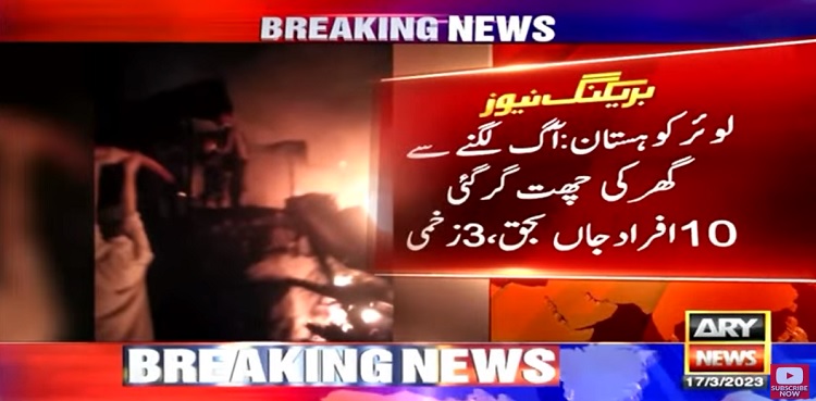 As per details, the tragic incident of fire was reported in Serri Pattan, Lower Kohistan. The roof of the house collapsed due to the intensity of the fire and as a result, at least 10 people lost their lives, while three were injured.