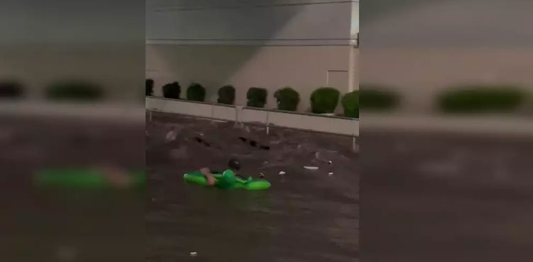 One of the videos that have gone viral this week showed a man floating down the waterlogged streets of Las Vegas on what appeared to be a pool float.