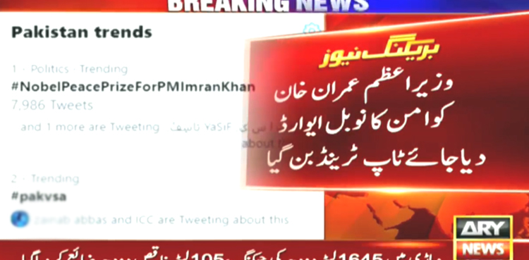 People from wide sections of the society, including various politicians, took to the social networking site and demanded the Nobel Peace Prize for Prime Minister Imran Khan.