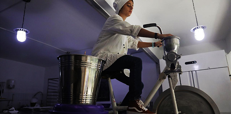 In the middle of the floor of her company Mon Choco’s factory sits a grinding bike, surrounded by trays of carefully sorted cocoa beans. Poured in a funnel, beans are transformed into a paste by a grinder activated through pedalling.