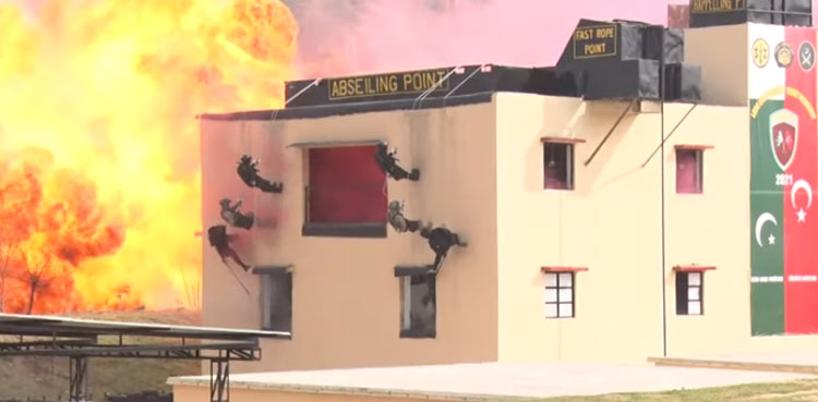 Free-fall by paratroopers and martial arts were also practiced during the training. Inspector General Training and Evaluation Lieutenant General Syed Muhammad Adnan witnessed the closing ceremony as chief guest.
