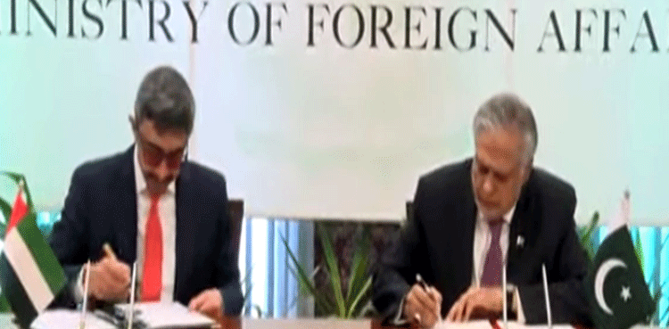 According to the Foreign Office spokesperson, Deputy Prime Minister and Foreign Minister Mohammad Ishaq Dar and UAE Deputy Prime Minister, and Minister of Foreign Affairs Sheikh Abdullah Bin Zayed al Nahyan signed an MoU between the UAE ministry of culture and the culture division of Pakistan to promote cooperation in culture sector after.