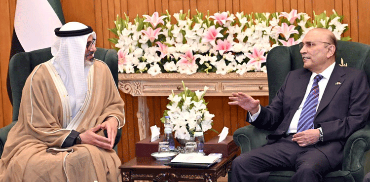 Earlier, president conferred the award of Nishan-i-Pakistan upon Sheikh Khaled bin Mohamed bin Zayed Al Nahyan in recognition of his services and unwavering support to Pakistan during a special investiture ceremony at Aiwan-e-Sadr.