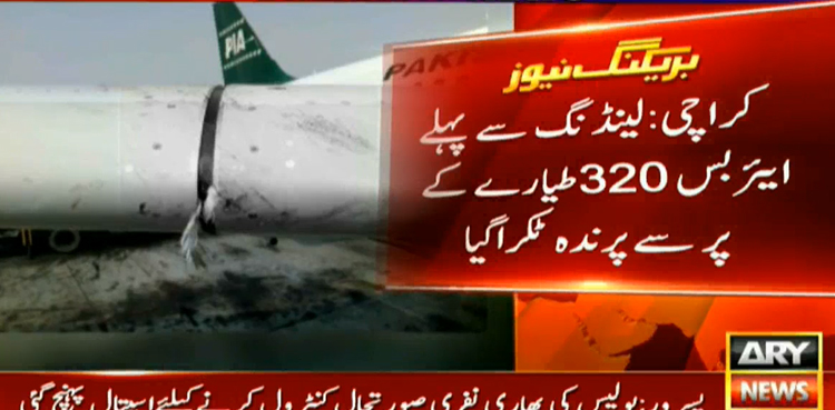 The PIA flight from Islamabad to Karachi, PK-301, with many passengers on board escaped an accident after hitting a bird before landing at Karachi airport. A wing of the Airbus A-320 aircraft was damaged in the incident, however, the pilot managed to land the plane safely.