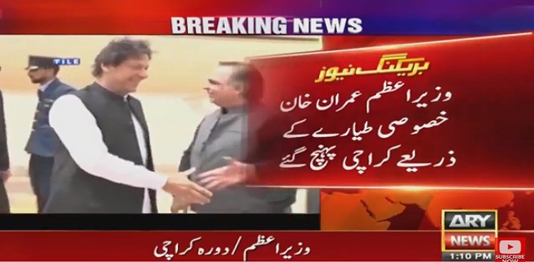 KARACHI: Prime Minister (PM) Imran Khan has reached Karachi on a day-long visit today (Saturday) to announce Karachi Transformation Plan for the rain-hit metropolis.