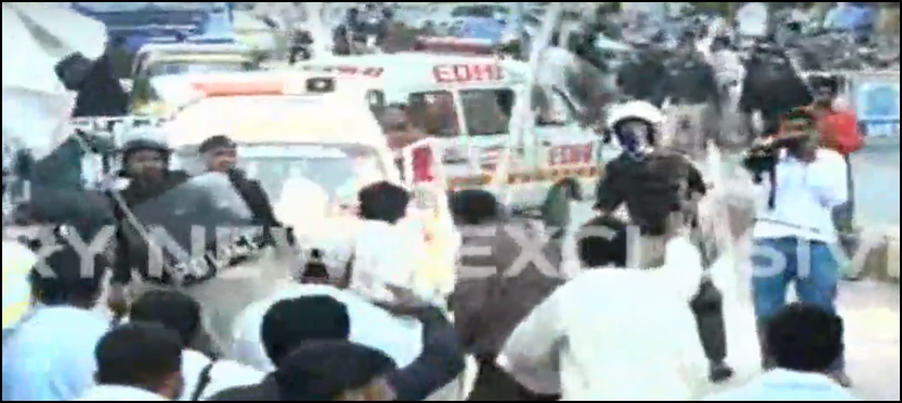 It all started, according to our correspondent, when one of the ex-cops attempted to commit self-immolation while police contingent tried to stop him, leading to clash between the two sides.