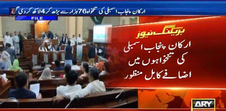 LAHORE: The Punjab Assembly has approved the manyfold increase in the monthly salaries of MPAs, provincial ministers, speaker, deputy speaker, parliamentary secretaries and other officials, ARY News reported on Monday.