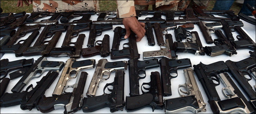 “On the indication of an accused affiliated with a political party, Rangers personnel conducted raid in Surjani and recovered large quantity of the arms,” a spokesman of the paramilitary force said.