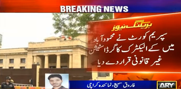 KARACHI: The Supreme Court on Thursday declared a grid station of the K-Electric in Karachi’s Mehmoodabad neighbourhood illegal, reported ARY News.