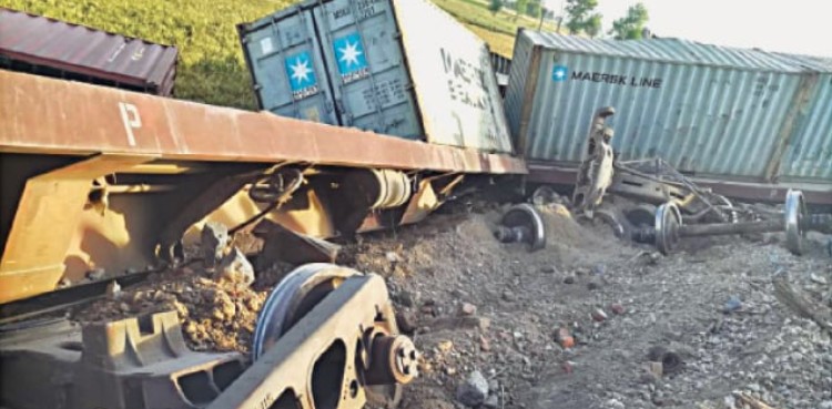 Rail traffic on both up and down tracks of the main line suspended after the accident. Railway authorities were mobilising machinery, including a crane, to remove debris of the engine and bogies of the goods train from the track.