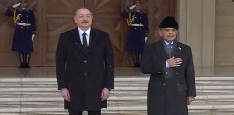 Prime Minister Shehbaz Sharif on Monday was given a guard of honour as he arrived at the Zagulba Presidential Palace to hold a bilateral meeting and delegation-level talks with President of Azerbaijan Ilham Aliyev.