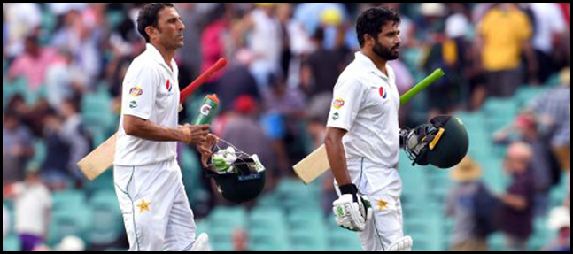 SYDNEY: Azhar Ali and Younis Khan kept Pakistan afloat after rookie Peter Handscomb made it three centurions in Australia’s big first innings declaration at the third Sydney Test on Wednesday.