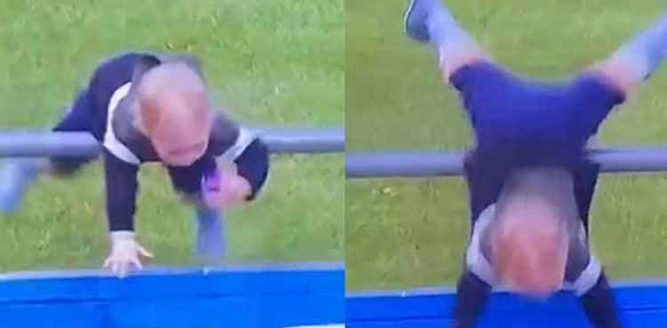 In a now-viral video, a toddler can be seen falling from the upper stand to the lower one. An anxious father ran to rescue his baby, but only to fail. Luckily, the gap was not too deep and the child would not have injured himself majorly.