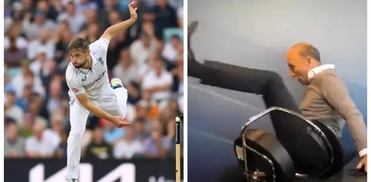 Watch: Nasser Hussain falls off chair ‘in shock’ seeing Woakes’s bowling