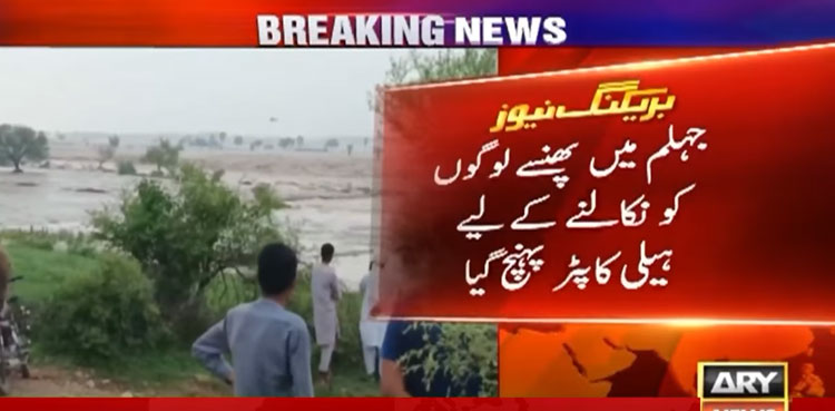 Pakistan army rescues flood-hit people via helicopter in Jhelum