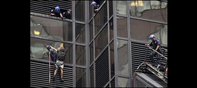 “We were able to break a window and establish some type of dialogue and we then secured three jumper air bags and numerous amounts of equipment for a high-angle rescue job,” Manhattan South police commander William Morris told reporters after the incident.