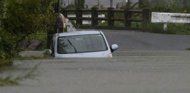 Footage on national broadcaster NHK showed homes with roofs partly sheered off while cars drove wheels-deep on flooded roads in the country’s southwest. The storm made landfall in Kyushu on Thursday, bringing record levels of rainfall.