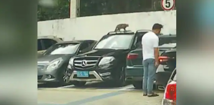 The viral video, shared by Buitengebieden on Twitter, showed the feline climbing on the vehicle’s bonnet. It then walks on its roof. It tries to jump on the walls but falls.