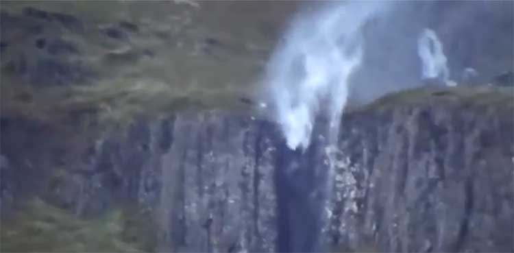 A waterfall in Scotland started flowing upside down against its usual behaviour where it moves towards downstream.