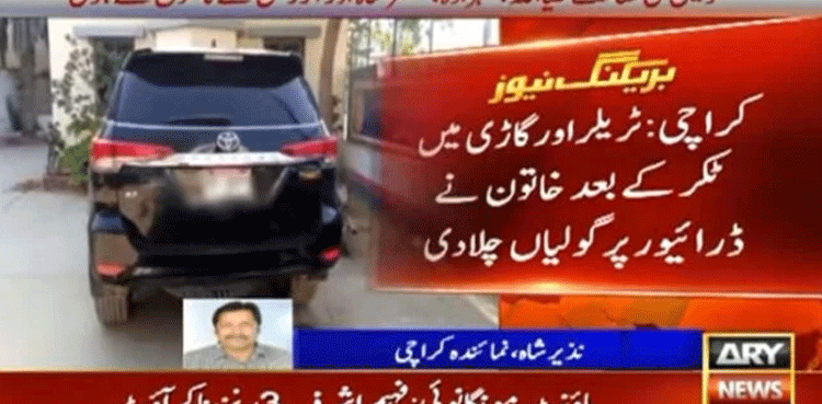 KARACHI: An enraged woman opened fire on a truck driver following a car collision in Karachi’s Essa Nagri area, ARY News reported on Saturday.