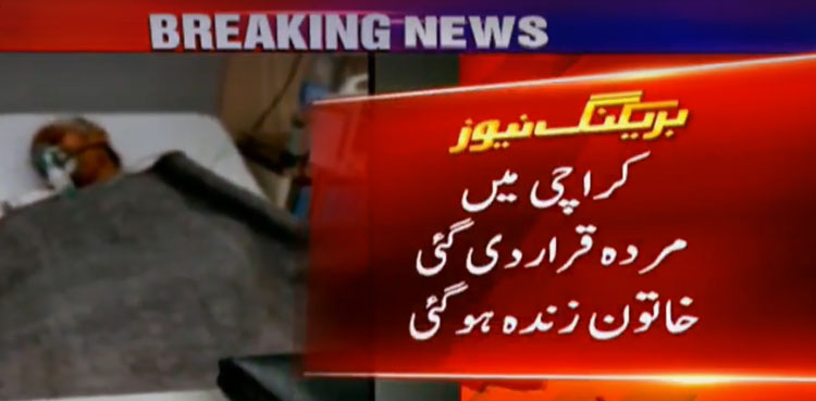 KARACHI: A woman who was pronounced dead by doctors on Wednesday was found to be living during her final rights were being performed at the mortuary in the metropolis, ARY News reported.
