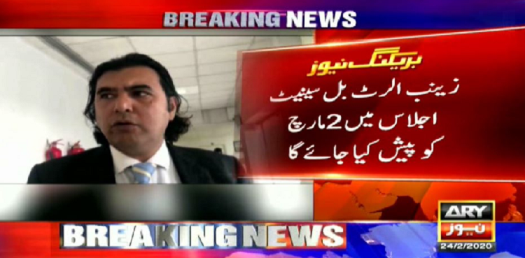 ISLAMABAD: Senate’s Standing Committee on Human Rights on Monday passed Zainab Alert Bill after necessary amendments, ARY News reported.